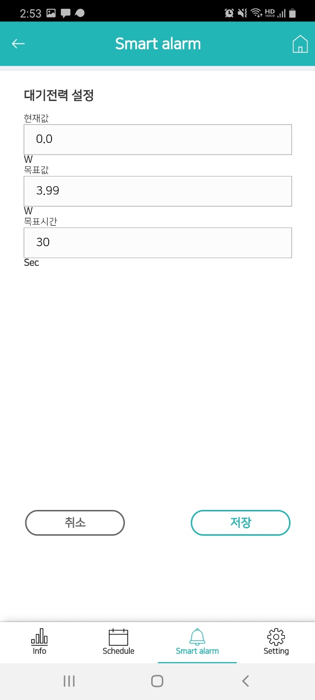 따라서 위와 동일하게 대기전력 옵션에서 목표값에 "3W"라고 적고 저장한 뒤 설정을 켜줍니다. ^^