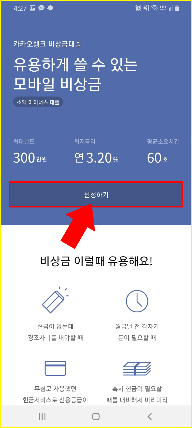 그러다보니 당장 현금이 없으니 카카오뱅크 비상금 대출에도 관심이 생긴 것 같습니다.