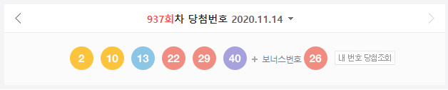 제 937회 로또 당첨번호 조회 결과가 발표 되었습니다.