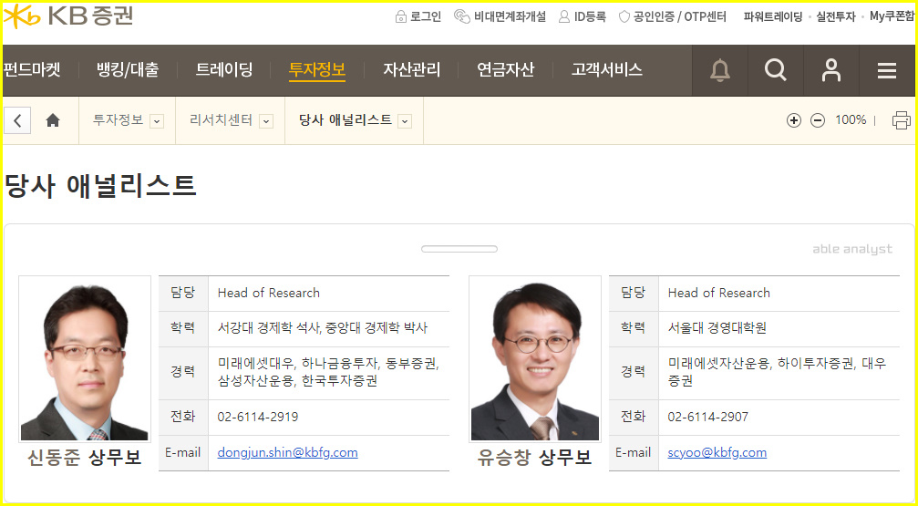 여기 계신 애널리스트 분들 학벌, 이력, 정보 한번 쭉 보시고 오시면 나보다 더 잘 알겠는데?