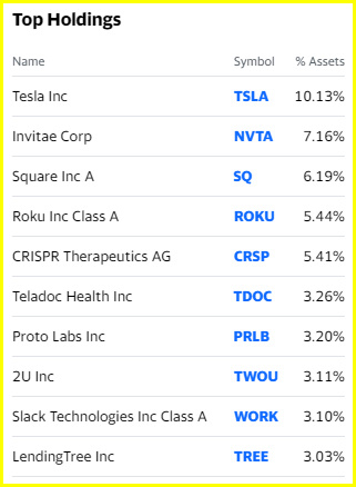 대안이 될 수 있기 때문이죠!~ ARKK를 1주 매입하면 이 안에 있는 10% 비율이