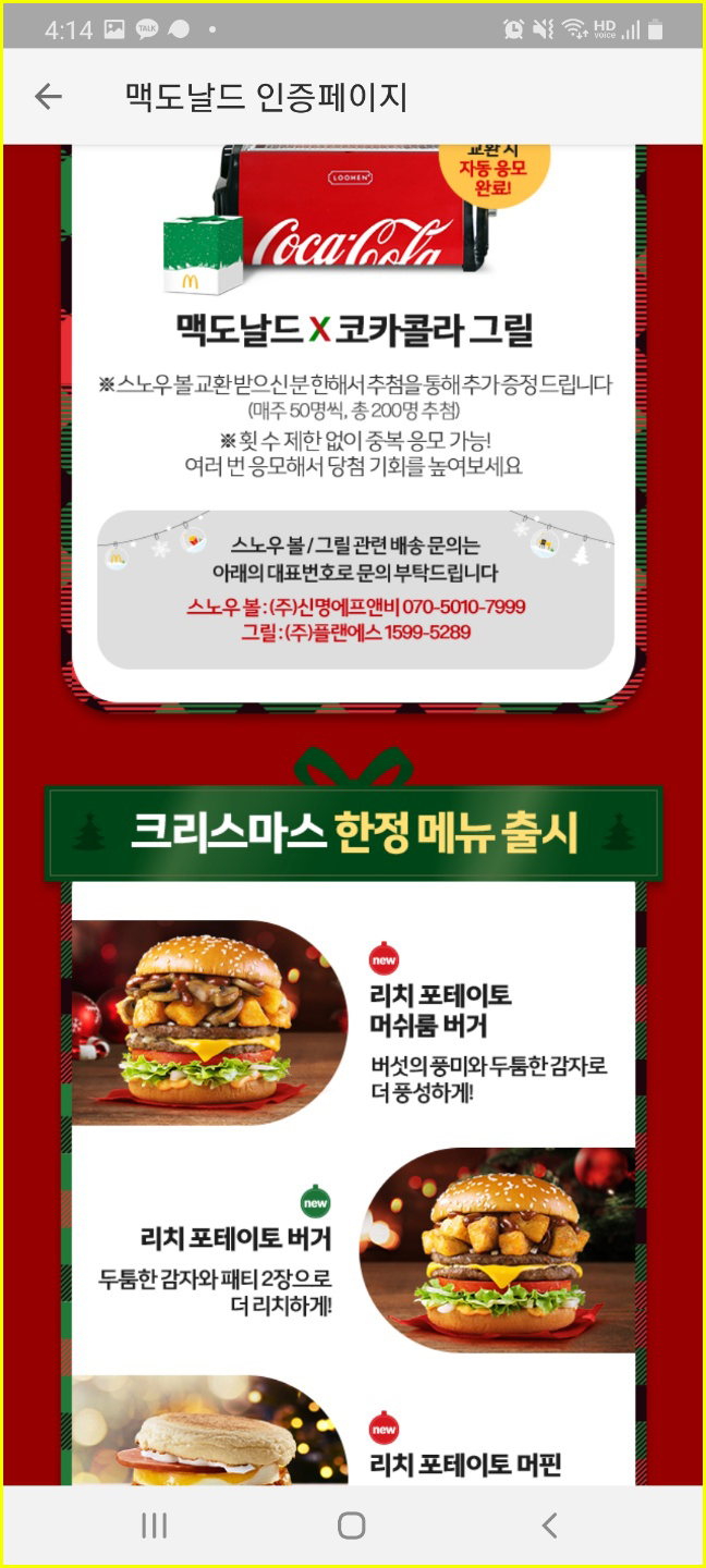 추첨을 통해 총 200명에게 맥도날드 X 코카콜라 그릴을 준다는데요 저도 받고 싶네요. ㅎㅎ