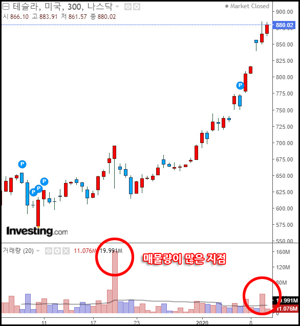 장 마감 당시 최종 가격은 880달러를 달성하게 됩니다, 갑작스럽게 가격이 올라 중간에