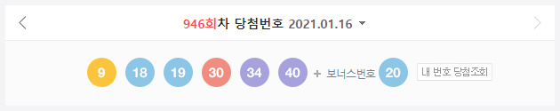 제 946회 로또 당첨번호 조회 결과가 발표 되었습니다.