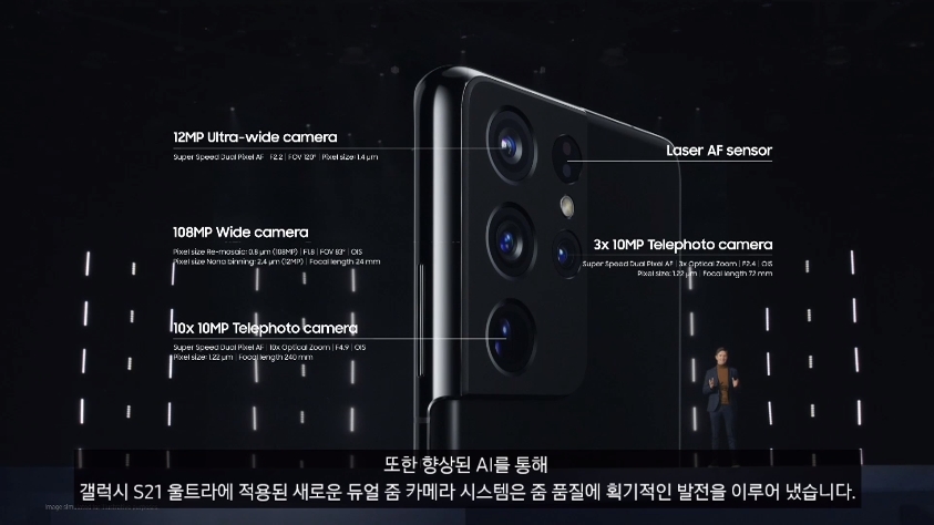 이번 갤럭시 S21에도 기존에 있었던 1억 8백만 화소의 광각 카메라가 탑재되었으며