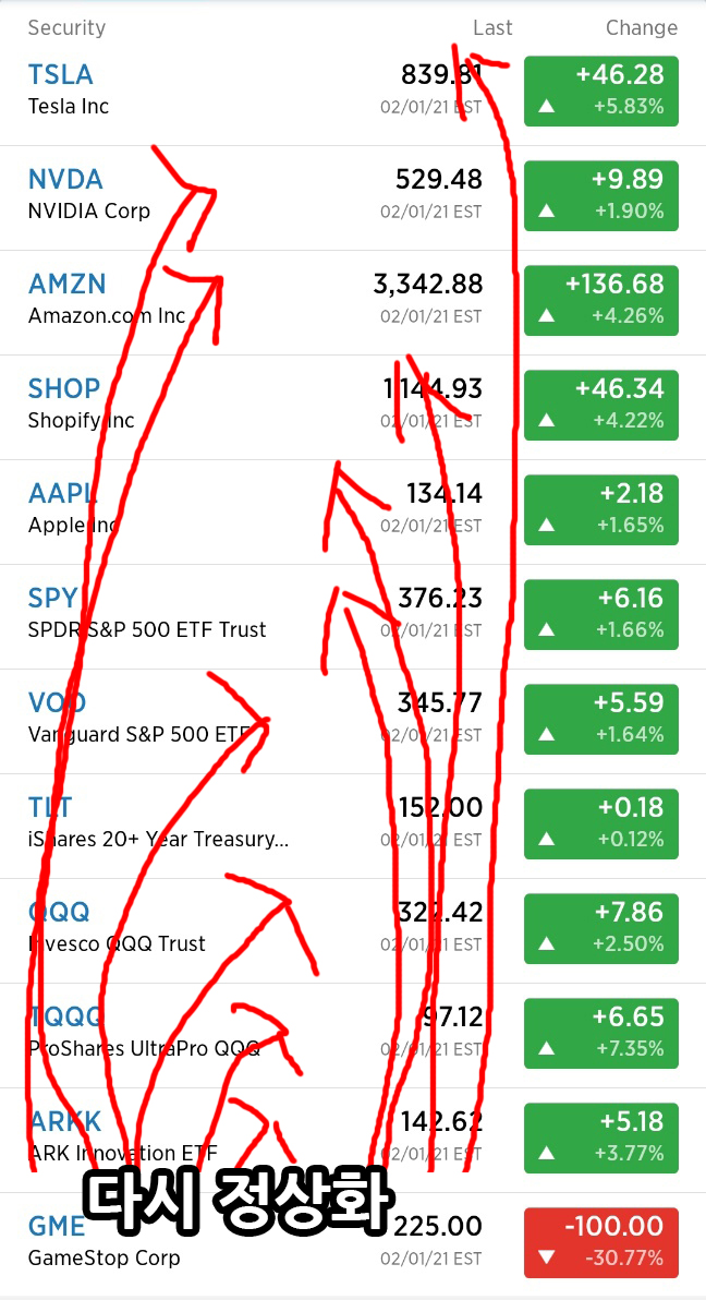 점점 게임스탑 주식이 원래 주가로 정상화 되어가는 모습을 볼 수 있네요.