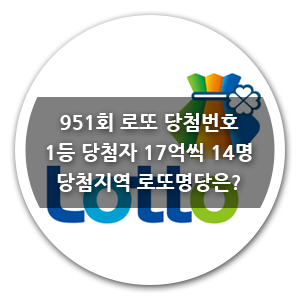 951회 로또 당첨번호 1등 당첨자 17억씩 14명 당첨지역 로또명당은?