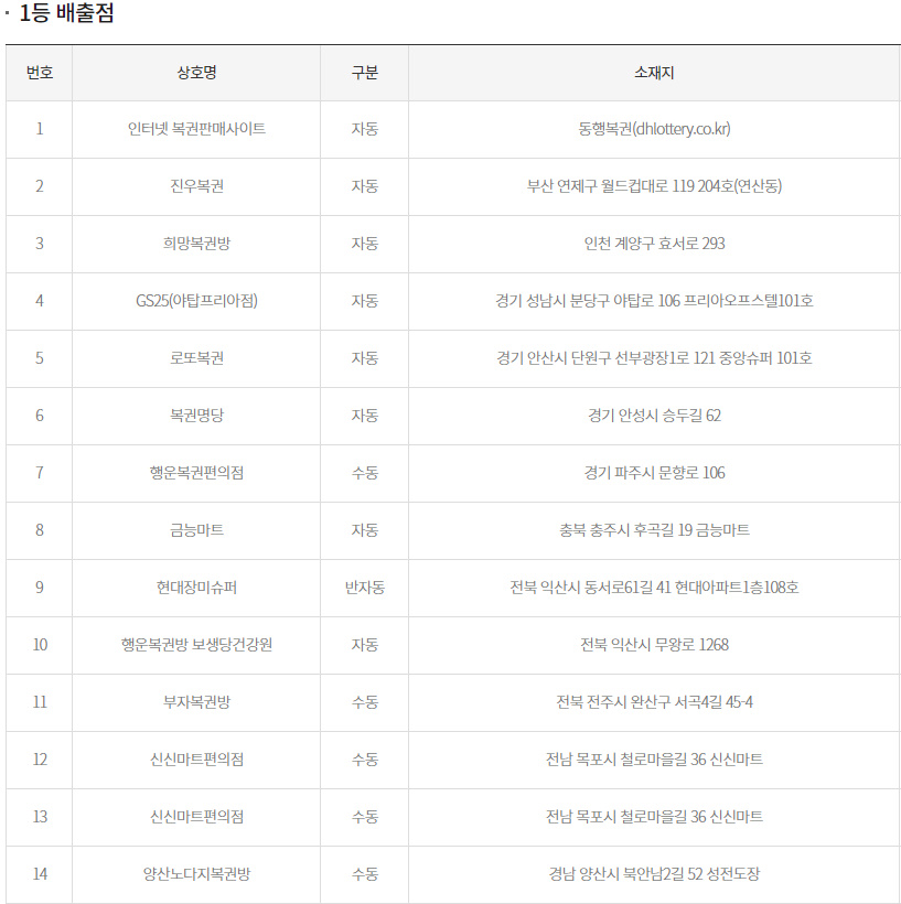 1등 당첨지역 로또명당까지 같이 나왔는데요.