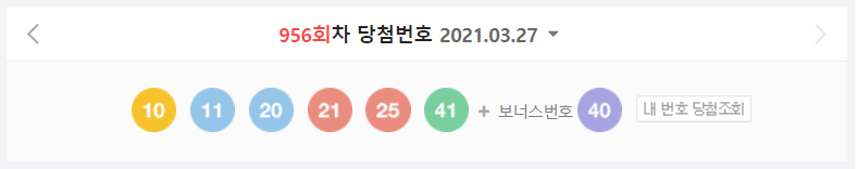 제 956회 로또 당첨번호 조회 결과가 발표 되었습니다.