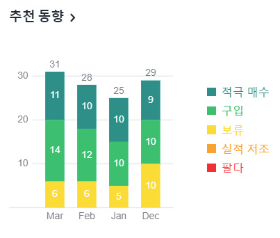 매수 추천의 경우 적극매수 1과 구입 2 사이의 1.8 정도의 수치를 보여주고 있고요