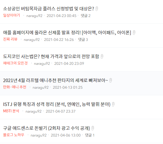 티스토리 블로그만 있다면 안정적으로 살기는 어려울 것 같다는 생각을 하게 되네요. ^^;;