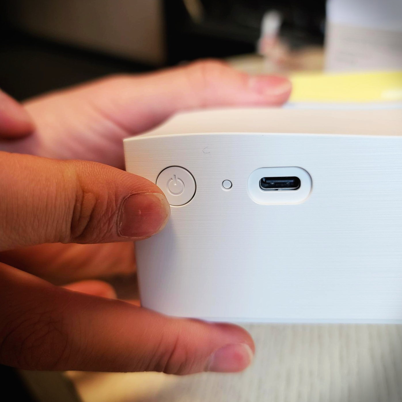 인쇄되는 부분 반대편을 보시면 이처럼 심플하게 전원 버튼과 인디케이터,