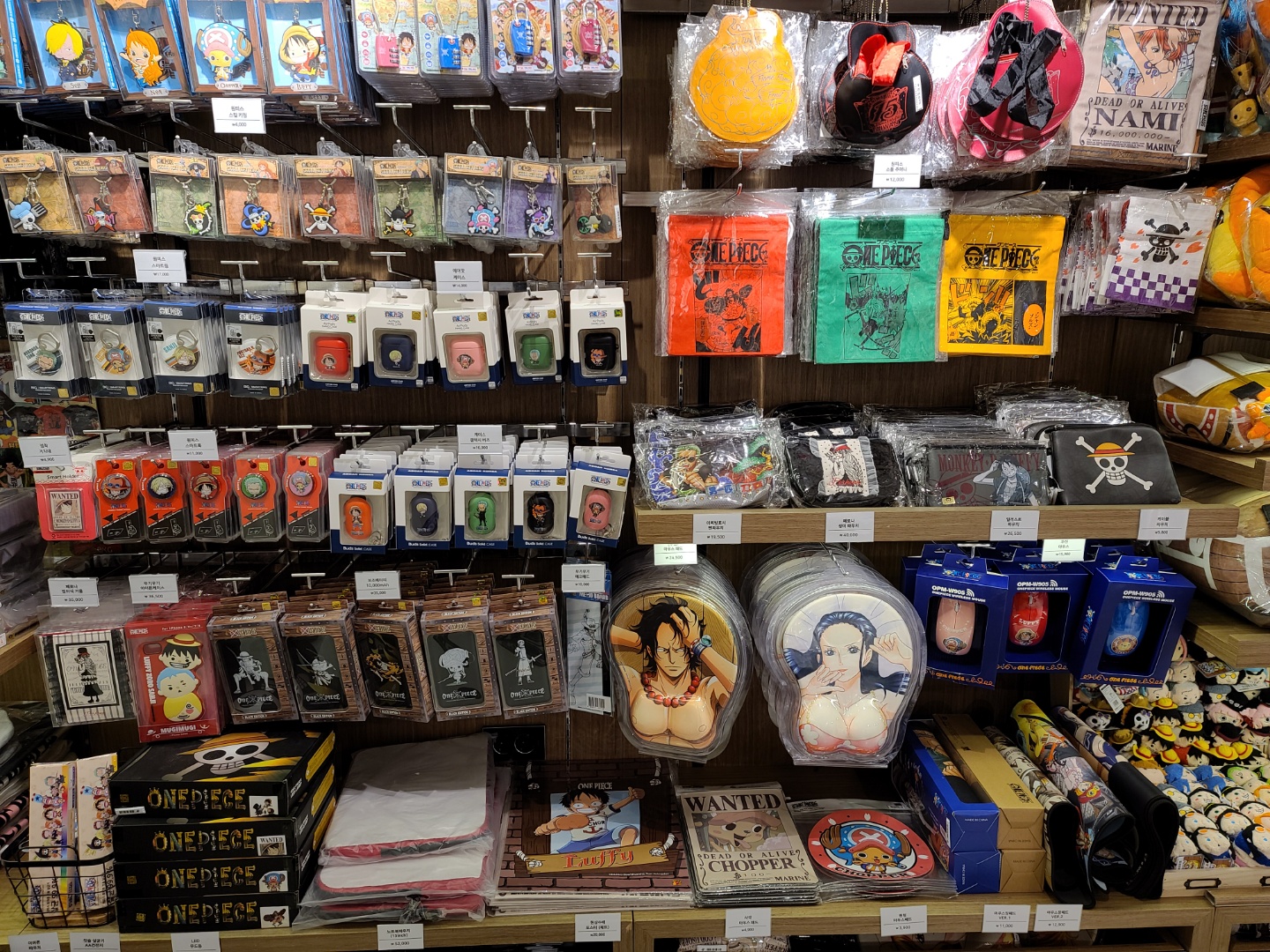 원피스 캐릭터가 들어간 버즈, 이어팟 케이스 부터 쿠션, 머그컵 등 다양한 상품들이 전시돼 있구요.