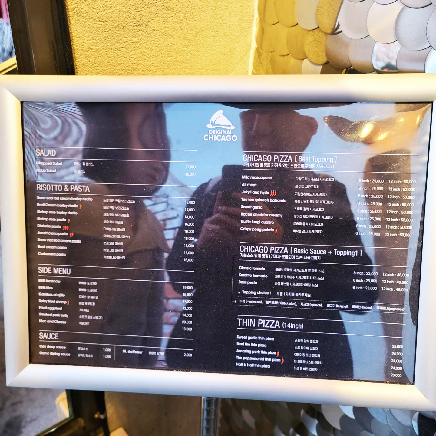 입구에 있던 오리지널시카고의 로고와 매뉴판입니다.