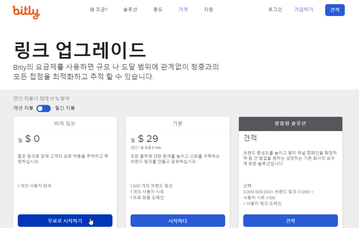 저희 같은 일반인은 그냥 간단하게 단축 링크를 만드는 것이기 때문에 "Free" 무료 사용을 클릭해줍시다.