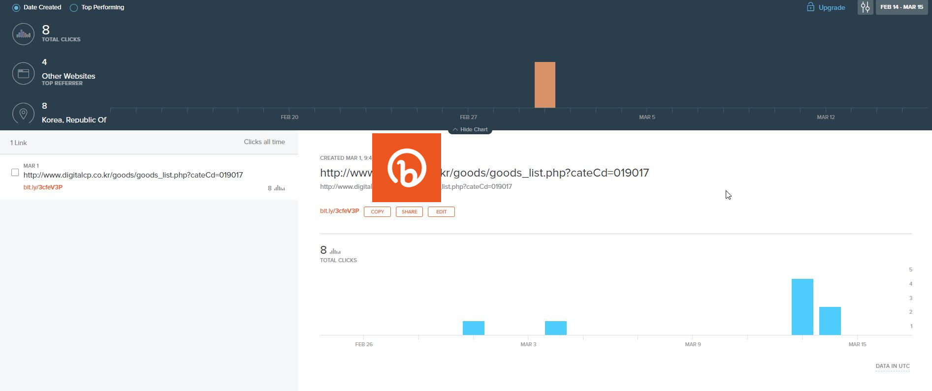 생성한 단축 URL로 몇번 클릭이 되었는지도 위 사진처럼 조회를 하실 수가 있구요!